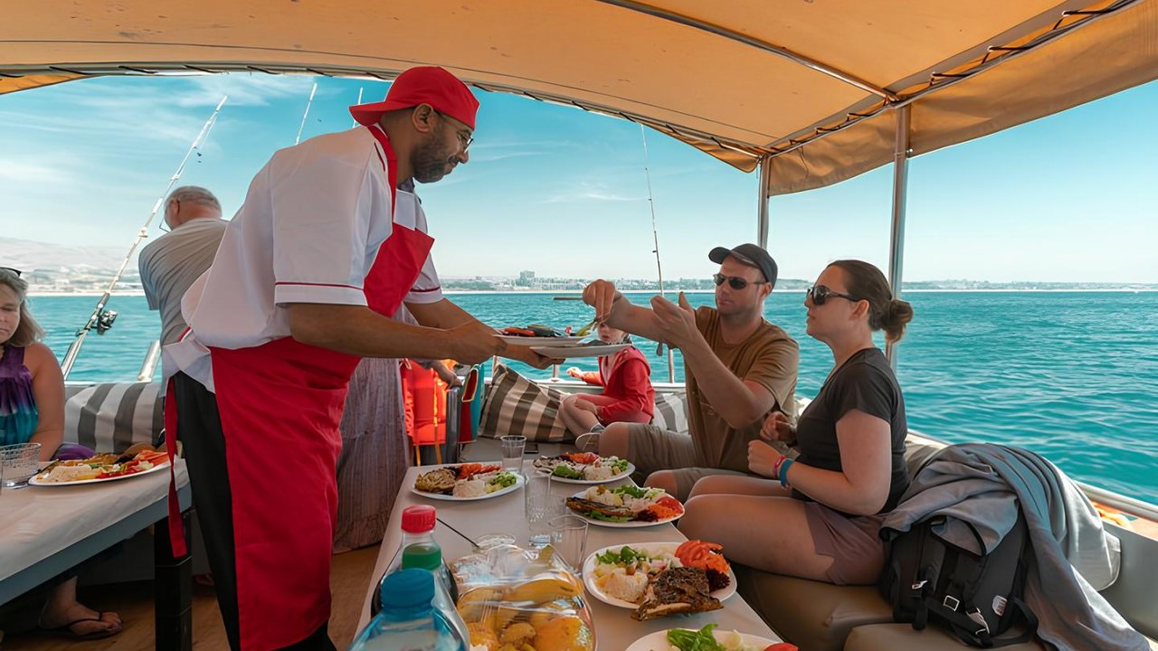 Unwind and soak up the stunning views of Agadir's coastline. After a brief journey, the boat will anchor, allowing you to swim and try your hand at fishing. Our friendly crew will then prepare a mouthwatering barbecue featuring freshly caught fish, accompanied by a refreshing salad. As you bask in the sun and fresh air, the boat will return to the marina, offering picturesque backdrops for memorable photos.
