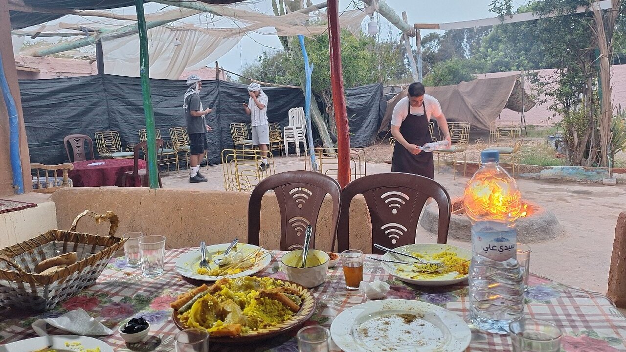 BBQ Dinner: After the camel ride, indulge in a delicious barbecue dinner. The menu often includes traditional Moroccan dishes like couscous, grilled meats, and local salads, accompanied by refreshing mint tea and pastries.
